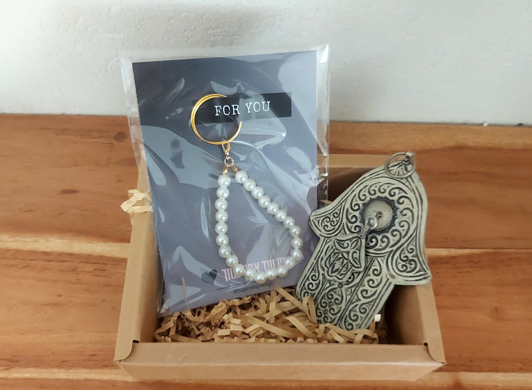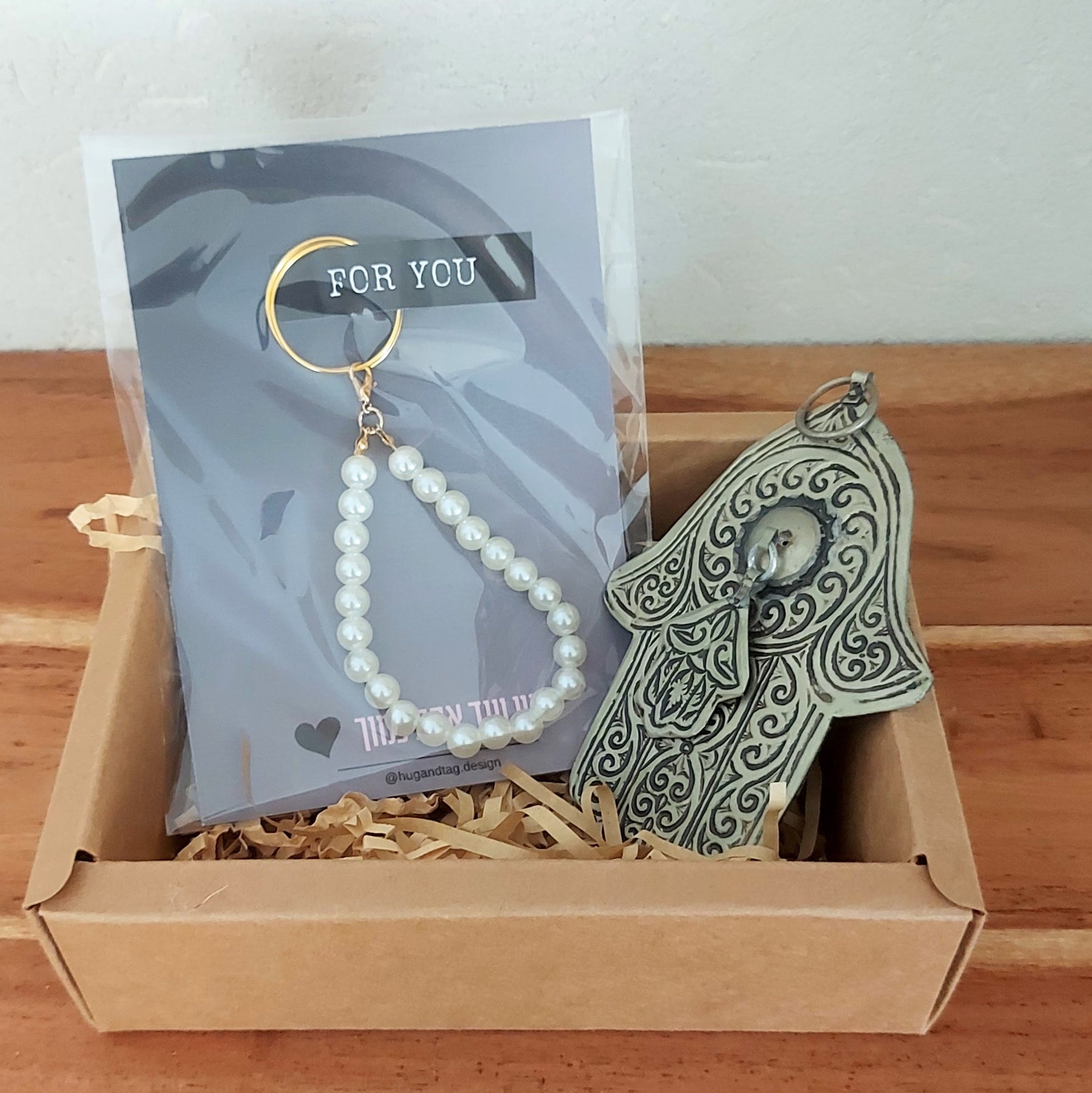 מחזיק מפתחות פנינים עם כרטיס ברכה של אהבה