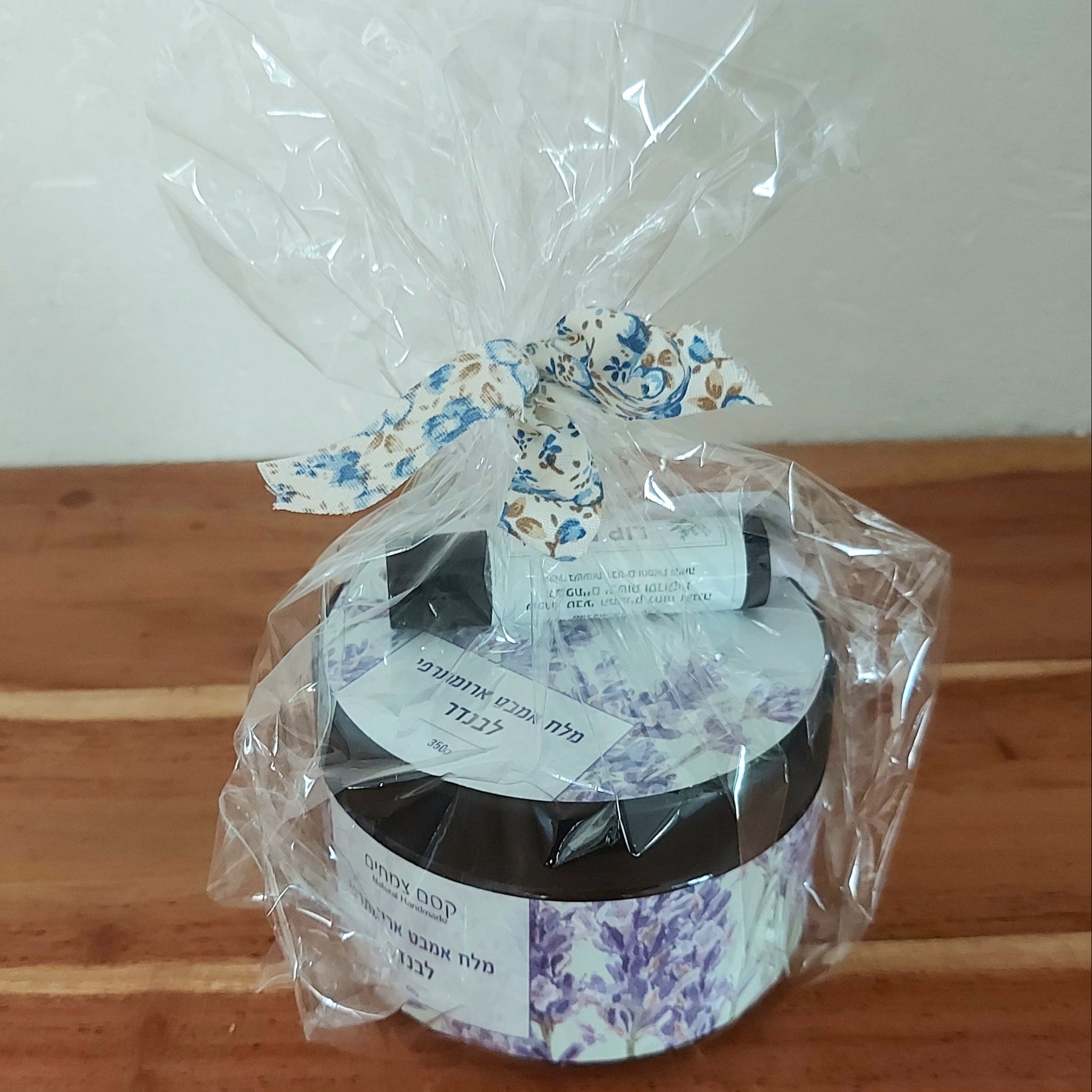המתנה ארוזה בקופסת קרטון ממוחזר עם צלופן
