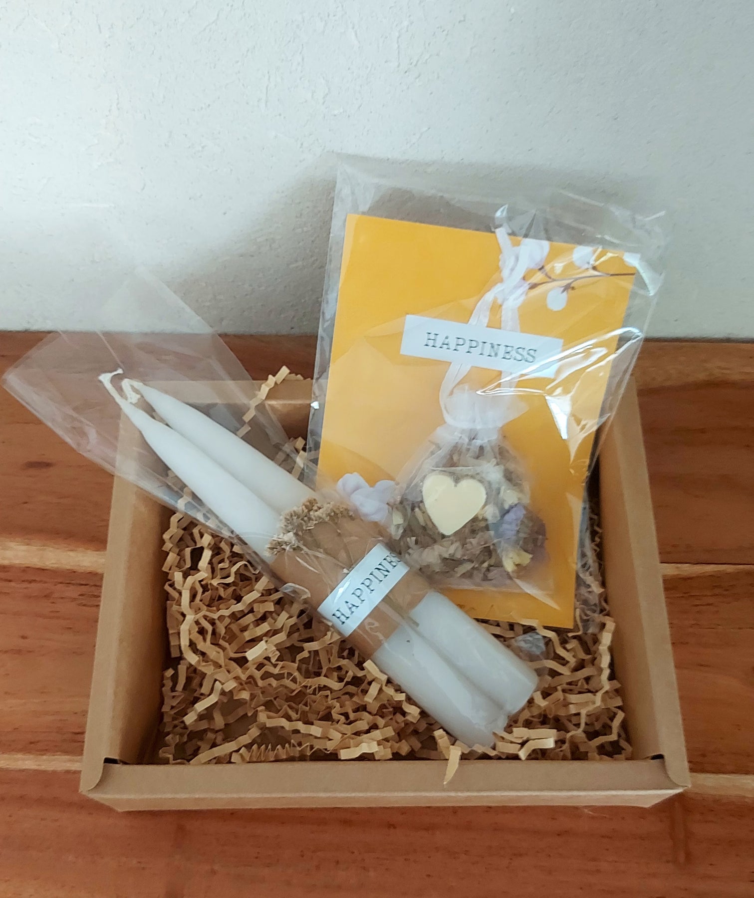 מארז ברכה של שמחה עם שקית ריחנית - פרחים וסבון לב